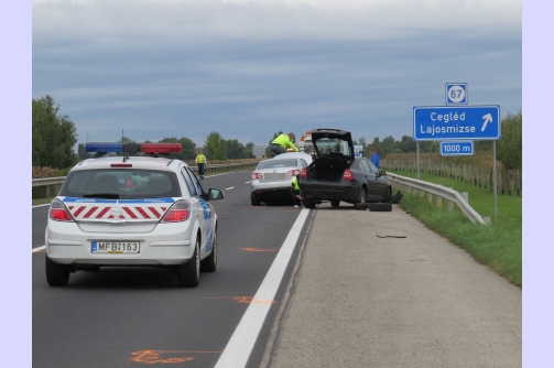 A jelenleg rendelkezésre álló adatok szerint a nagy sebességgel közlekedő autó egyik első kereke Lajosmizse közelében kitört, és az M5-ös autópálya 66+900-as kilométer-szelvénynél eddig ismeretlen körülmények között több járművet összetört. Az elsődleges adatok szerint az ütközés következtében személyi sérülés nem történt. A jármű szerb vezetőjét és a vele utazó 14 külföldi személyt a helyszínen elfogták a rendőrök.
