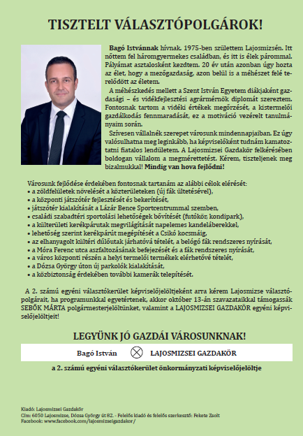 A Lajosmizsei Gazdakör jelöltjei: 2. vk.: Bagó István