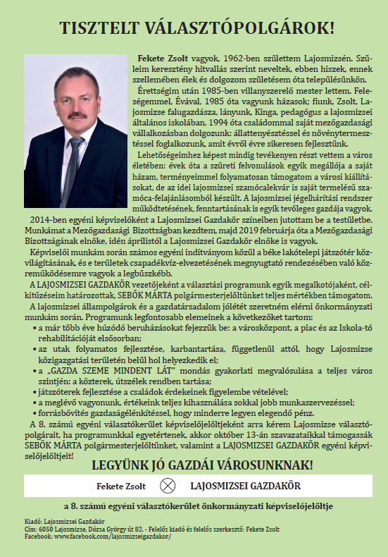 A Lajosmizsei Gazdakör jelöltjei: 8. vk.: Fekete Zsolt