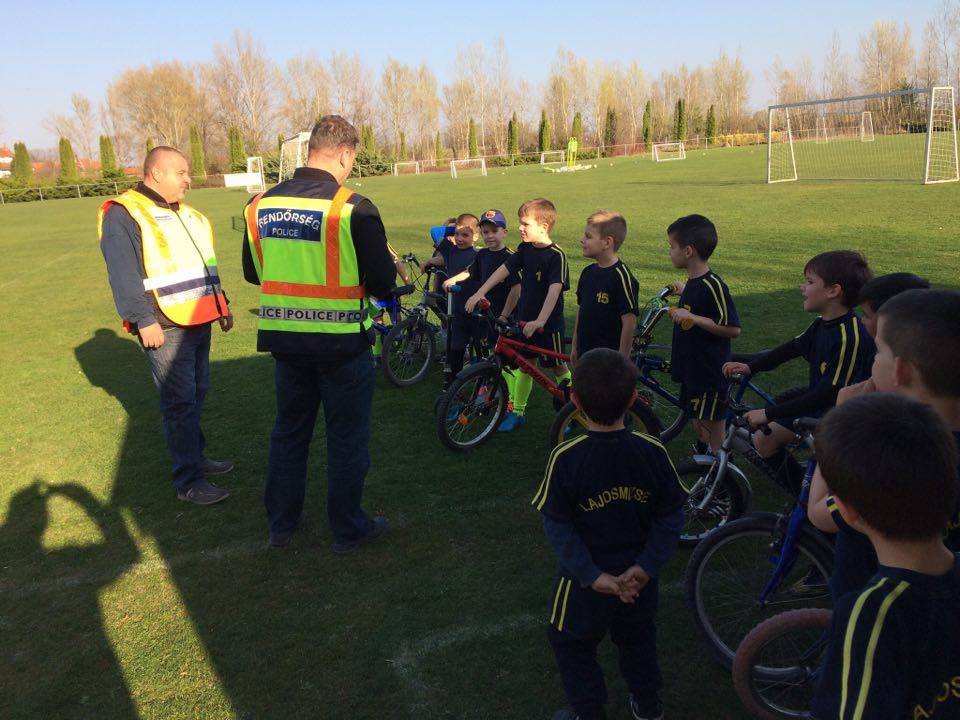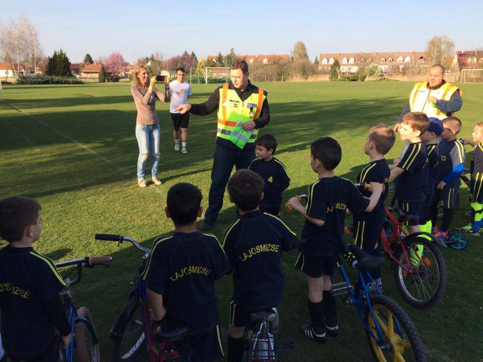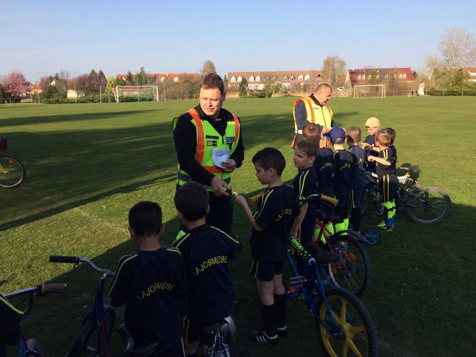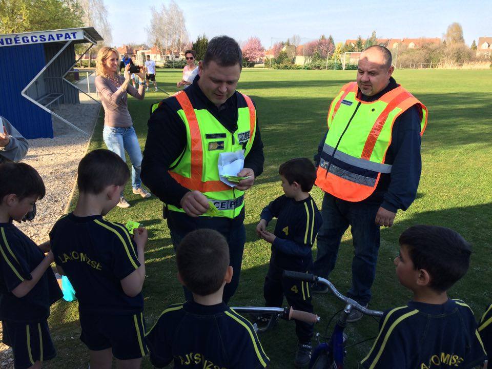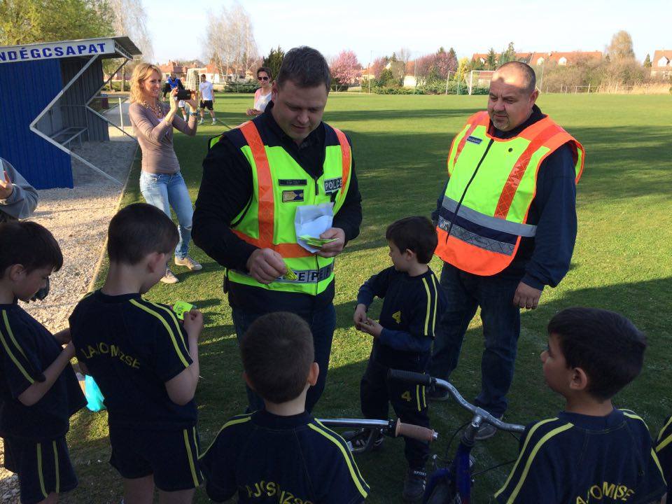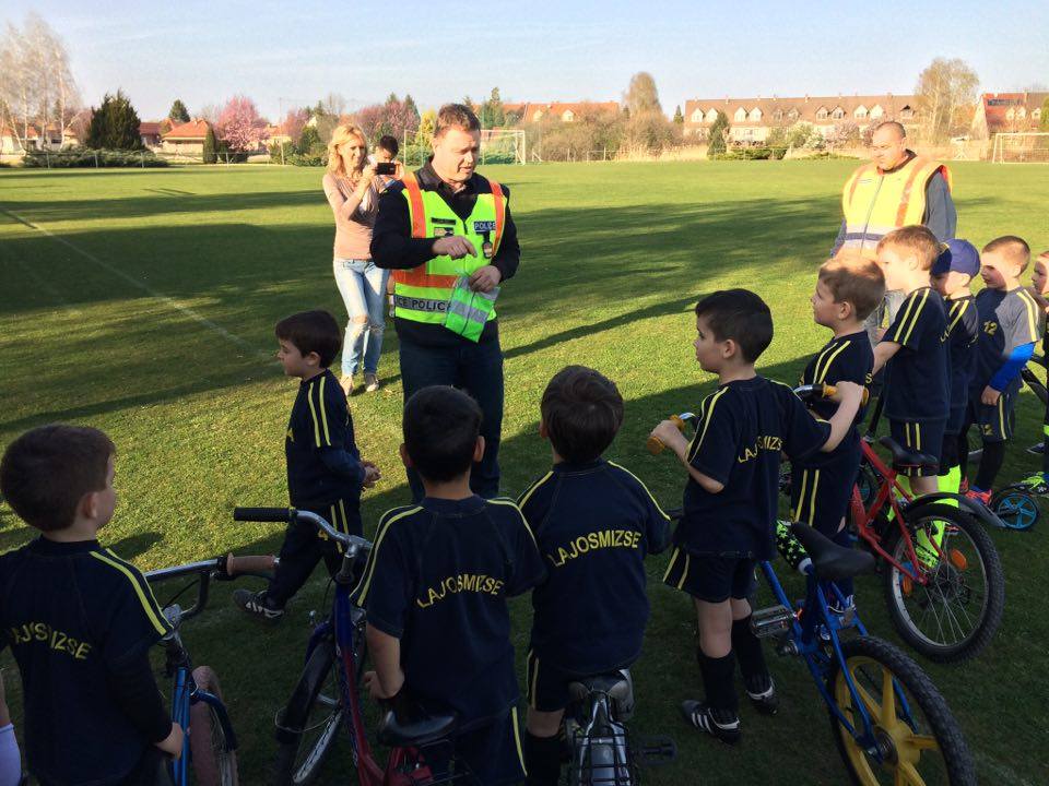 Nyári Zsolt r. őrnagy, a lajosmizsei rendőrőrs megbízott parancsnoka és Nagy Zoltán, a Lajosmizsei Polgárőr Egyesület elnöke az ovis focistáknak is vitt ajándék láthatósági mellényeket, és lámpákat a kerékpárokra, amik mellé pár közlekedési jó tanáccsal is szolgáltak!