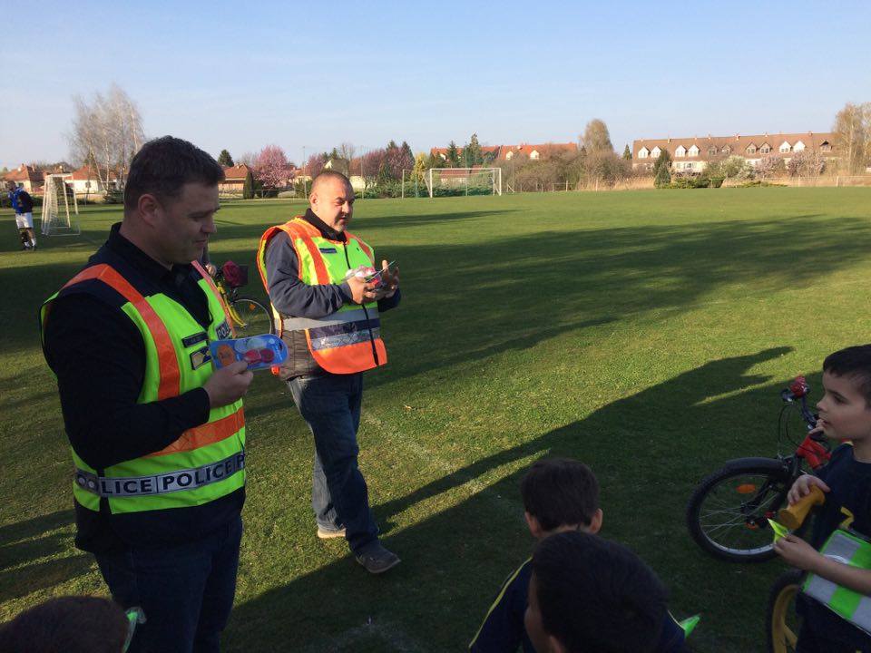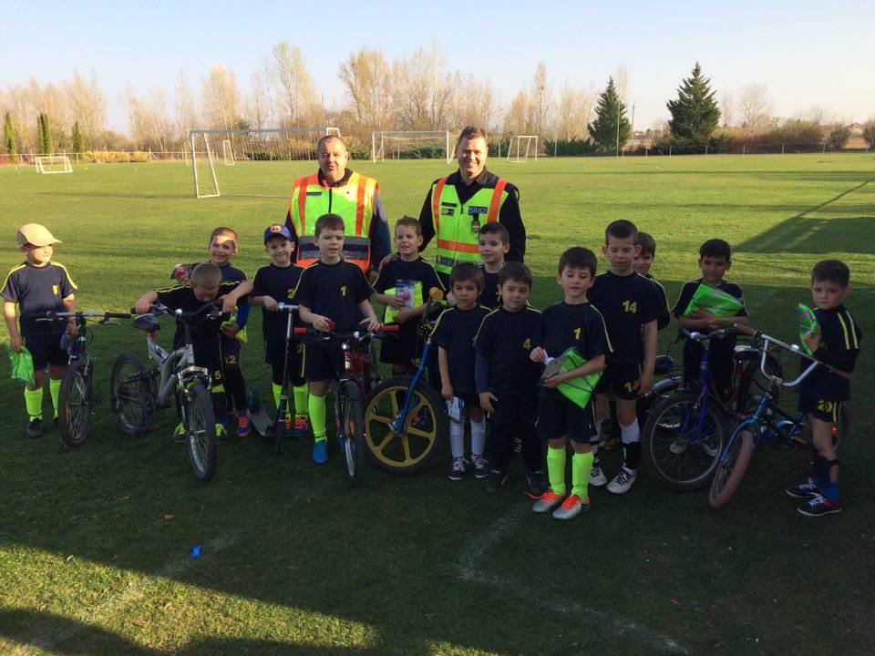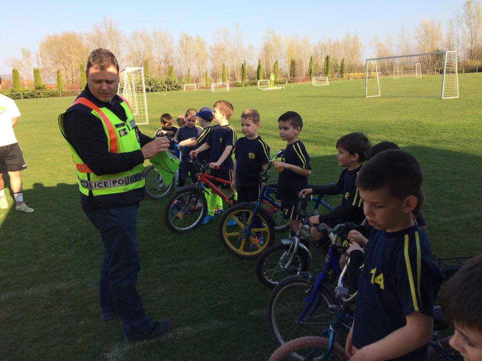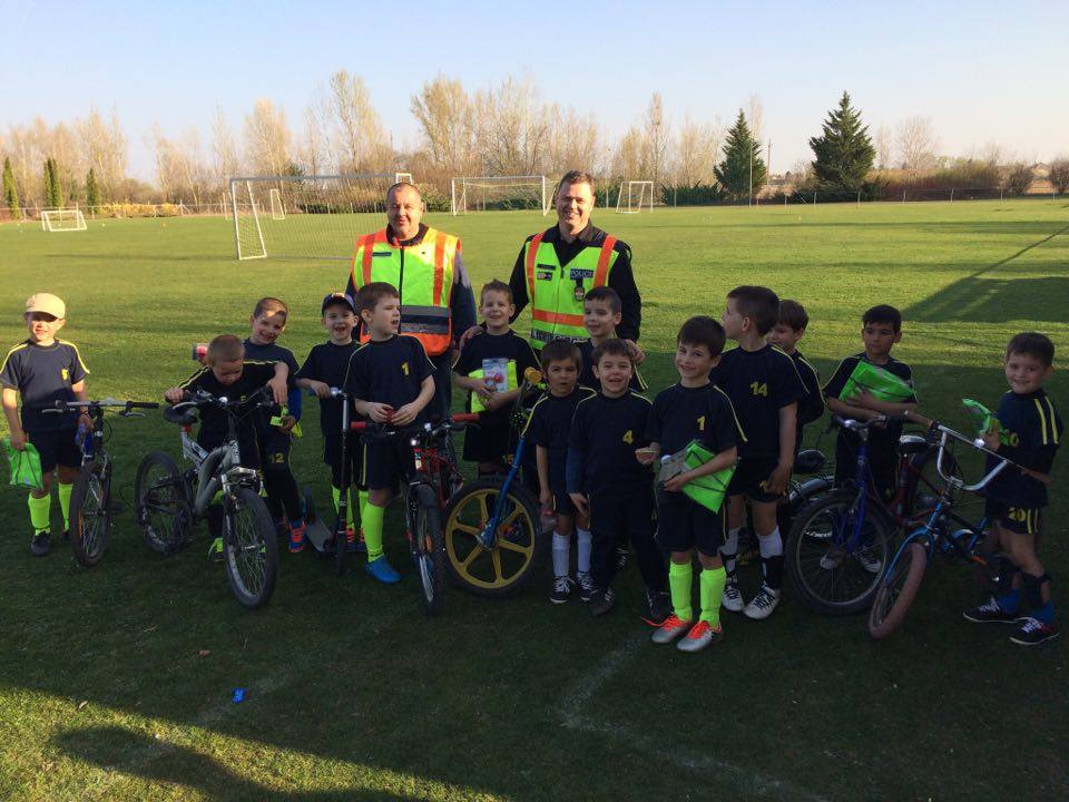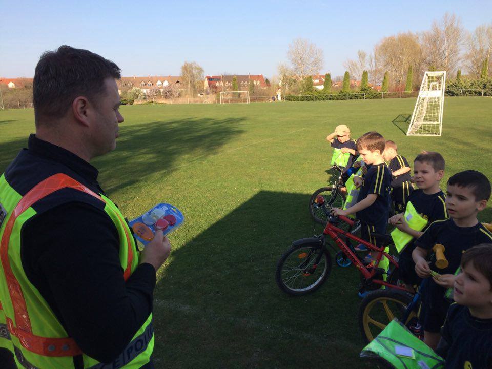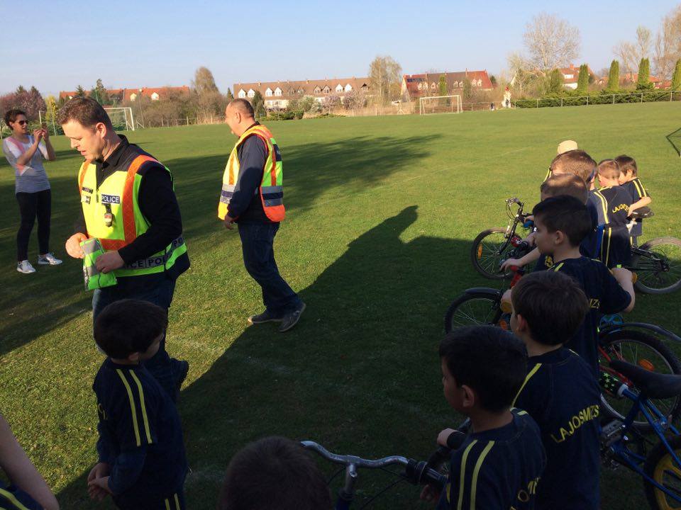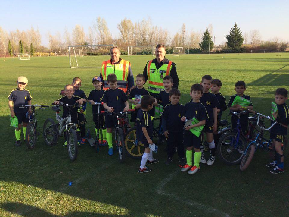 Nyári Zsolt r. őrnagy, a lajosmizsei rendőrőrs megbízott parancsnoka és Nagy Zoltán, a Lajosmizsei Polgárőr Egyesület elnöke az ovis focistáknak is vitt ajándék láthatósági mellényeket, és lámpákat a kerékpárokra, amik mellé pár közlekedési jó tanáccsal is szolgáltak!