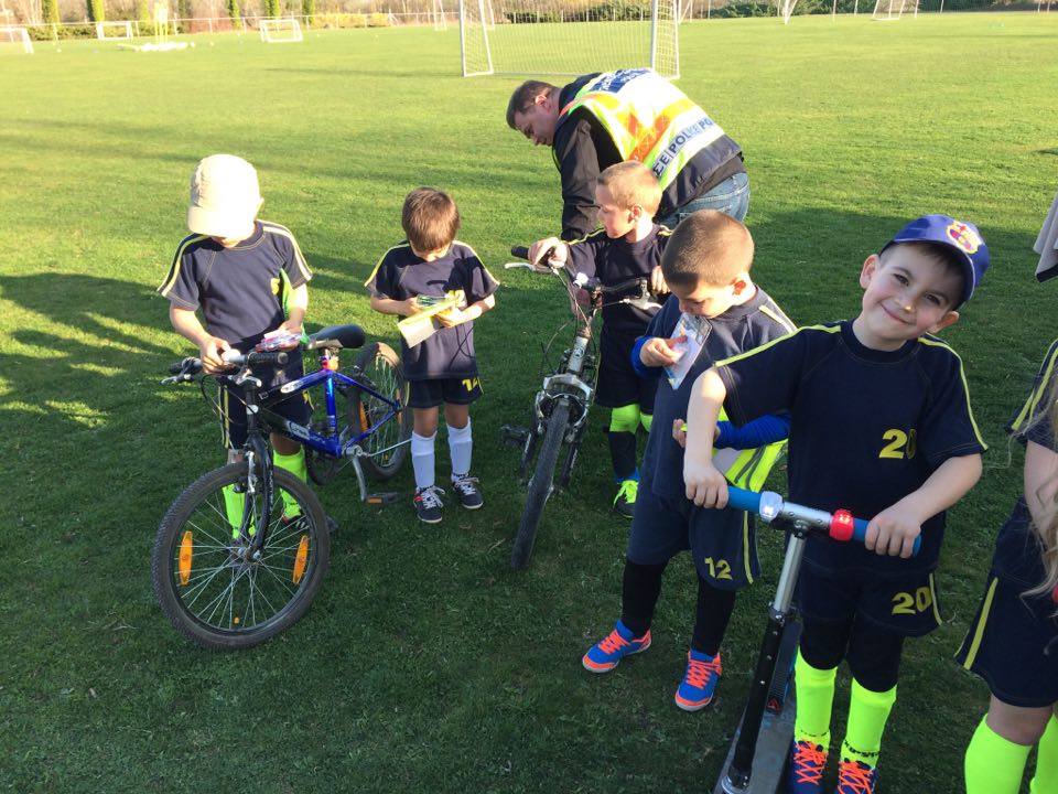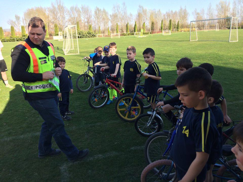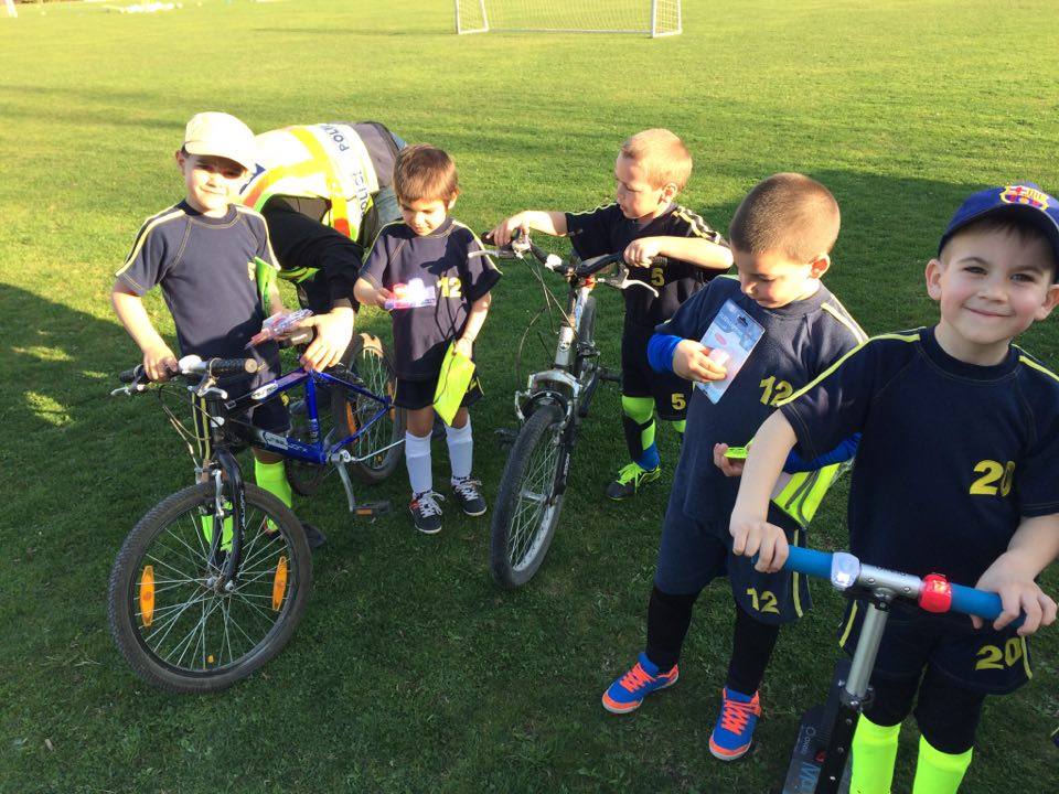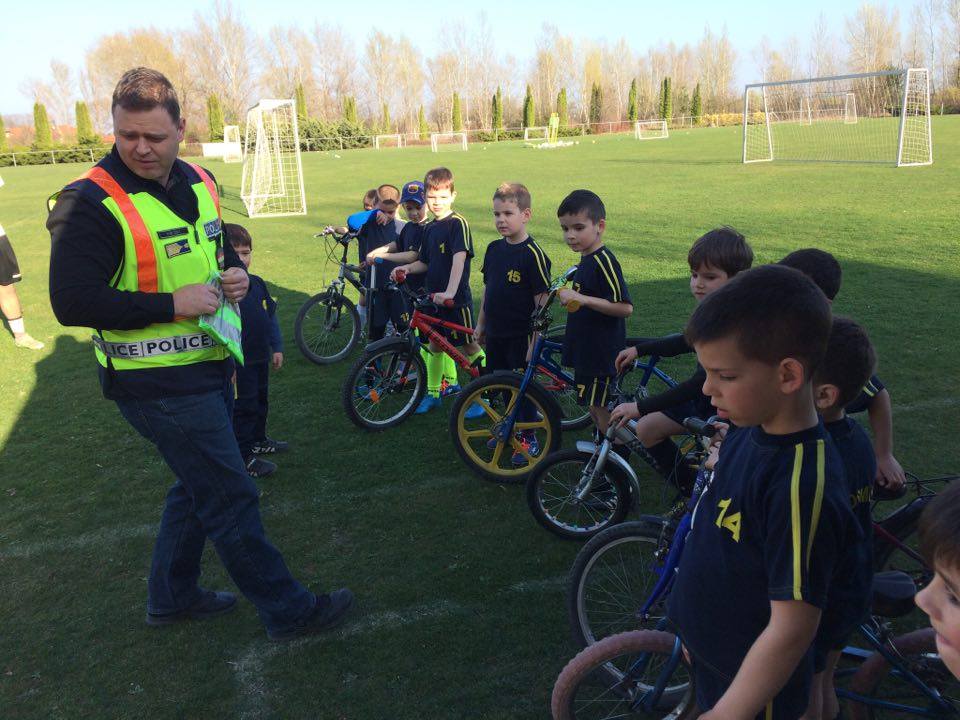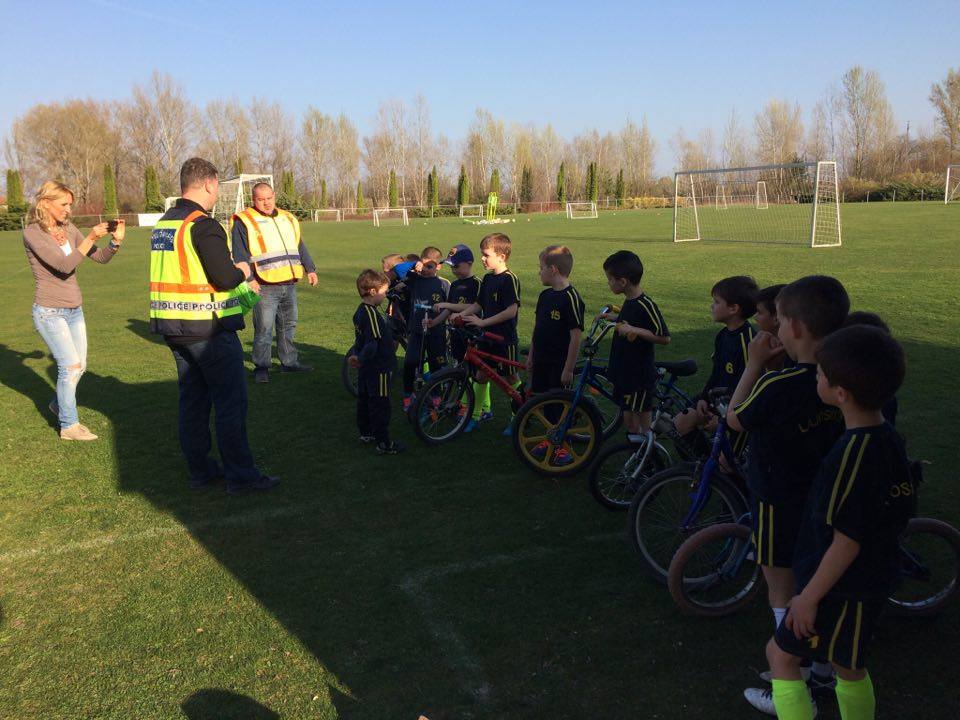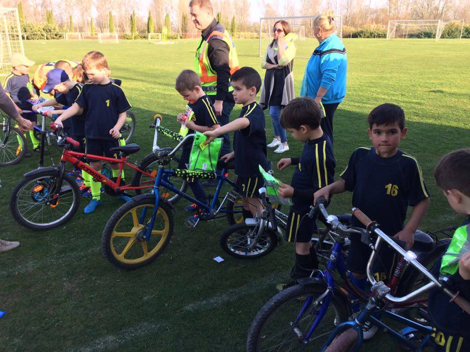 Nyári Zsolt r. őrnagy, a lajosmizsei rendőrőrs megbízott parancsnoka és Nagy Zoltán, a Lajosmizsei Polgárőr Egyesület elnöke az ovis focistáknak is vitt ajándék láthatósági mellényeket, és lámpákat a kerékpárokra, amik mellé pár közlekedési jó tanáccsal is szolgáltak!