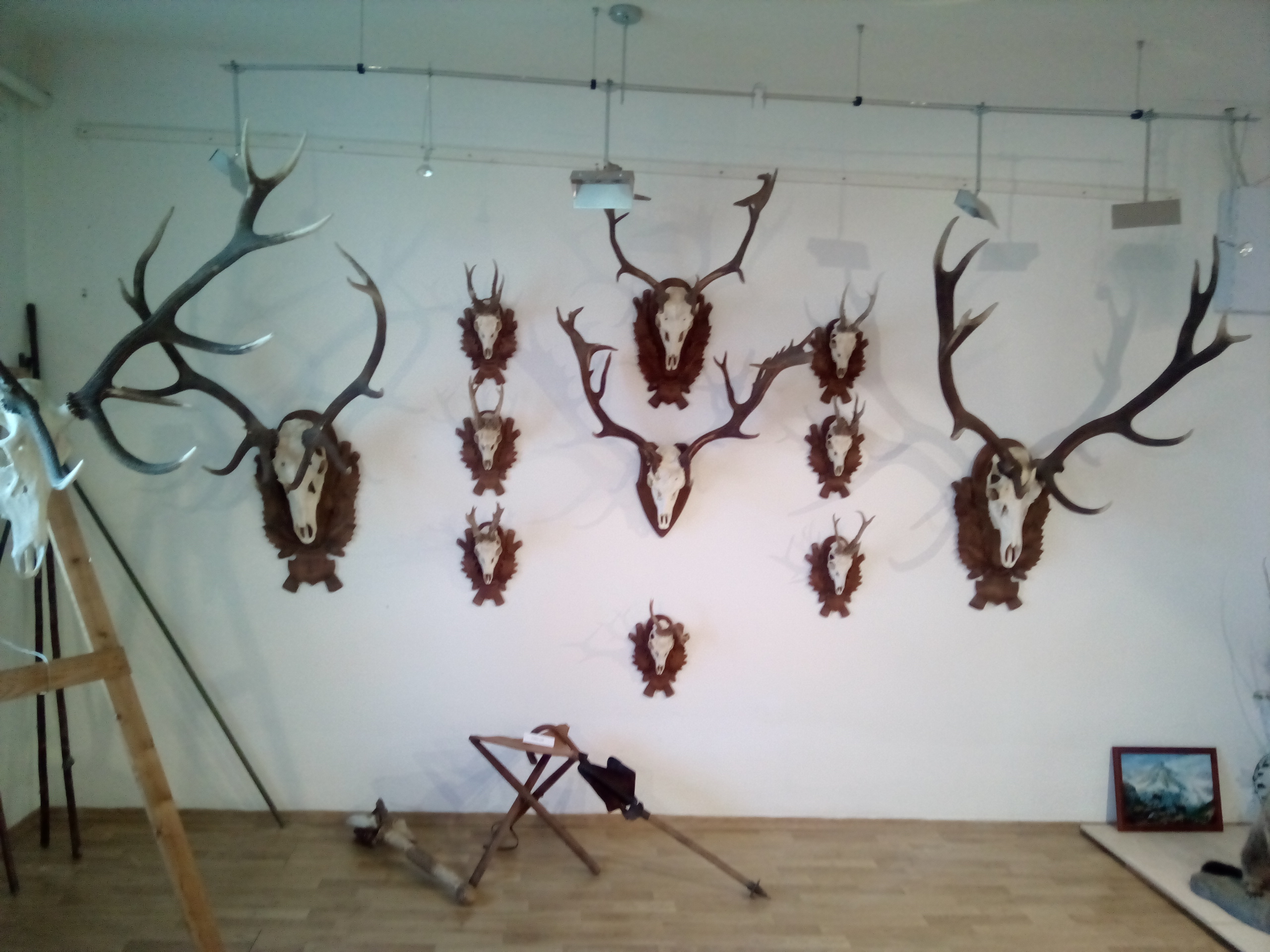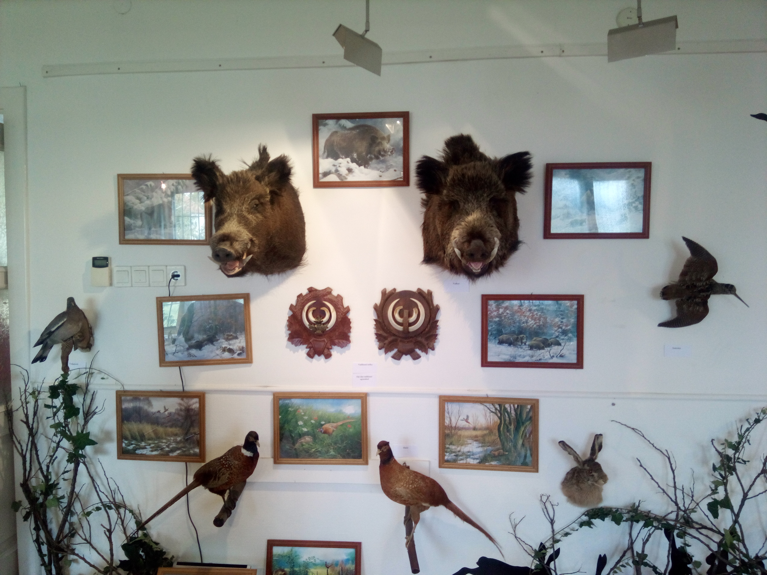 A számos szebbnél szebb trófea és vadászati témájú festmény szintén szemet gyönyörködtető.